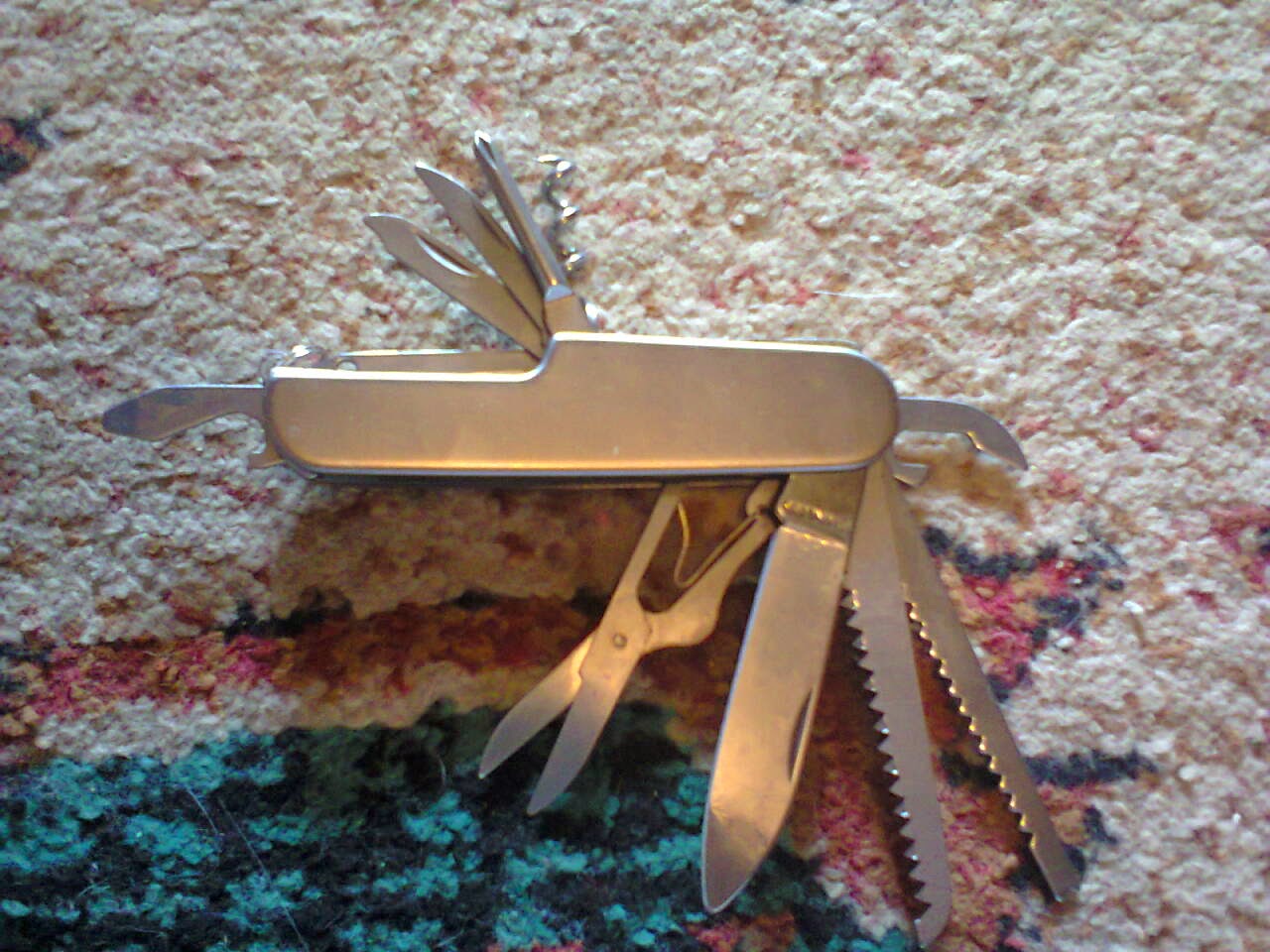Briceagul este unul multifunctional,contine cutitase,forfecuta,cutitase si multe alte instrumente folosite des,este ascutit.